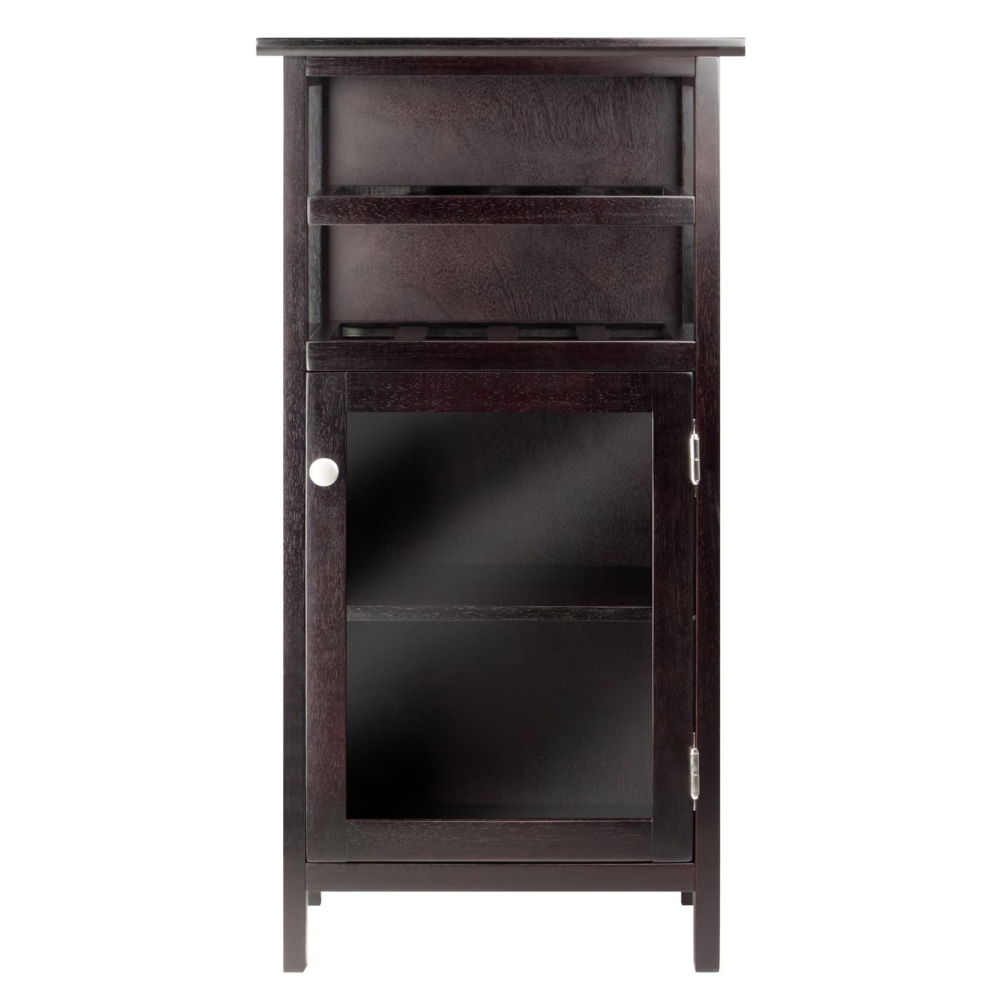 The Alta wine storage shelf brings a contemporary solution to your wine storage and entertaining needs with its clean lines; espresso finish; and simplistic design. The two top shelves can be used either for 8 wine bottles or 4 wine bottles on the top shelf and accessory storage on the bottom. Behind the glass cabinet door is a 15.2"W x 10.5"D x 19.7"H storage space with a middle shelf where wine glasses can be stored. The overall size of this storage is 19.1"W x 12.7"D x 37.4"H. Wine rack dimensions are 15.2"W x 11.5"D x 4.8"H.Overall size is 19.1"W x 12.7"D x 37.4"H.Cabinet inner dimensions are 15.2"W x 10.5"D x 19.7"H.Wine rack dimensions are 15.2"W x 11.5"D x 4.8"Hnullnullnull This product meets the oversized requirement per UPS/FedEx. The shipping weight reflected is the dimensional weight. This product also meets the large package requirement per UPS/FedEx. The estimated shipping cost will include this fee. Large package is $70.00; applied when length plus girth [(2 x width) + (2 x height)] combined exceeds 130 inches. Additional Handling charge of $10.50 applied where a package's longest side exceeds 48 inches in length; the second longest side exceeds 30 inches in length; or total weight is greater than 70 lbs.This product meets the oversized requirement per UPS/FedEx. The shipping weight reflected is the dimensional weight. This product also meets the large package requirement per UPS/FedEx. The estimated shipping cost will include this fee. Large package is $70.00; applied when length plus girth [(2 x width) + (2 x height)] combined exceeds 130 inches. Additional Handling charge of $10.50 applied where a package's longest side exceeds 48 inches in length; the second longest side exceeds 30 inches in length; or total weight is greater than 70 lbs.
