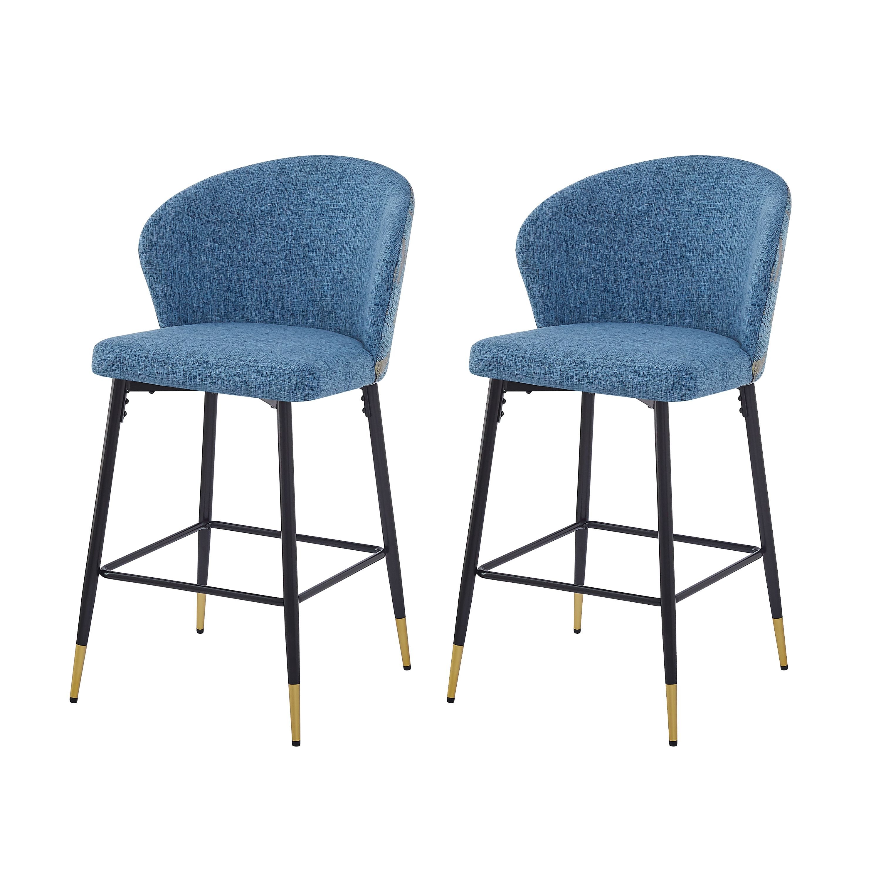 | Highlights | Metal Frame // Black&Golden Footrests // Blue&Golden Jacquard Cover // Breathable // Foam-Filled // 28inch Counter Height // Set of 2 // Plastic Glides Foot Pad // Curved Back // Modern Style // For Kitchen &Dining // 265lbs Weight Capcaity // Easy to Installation (10min/pc/person) |