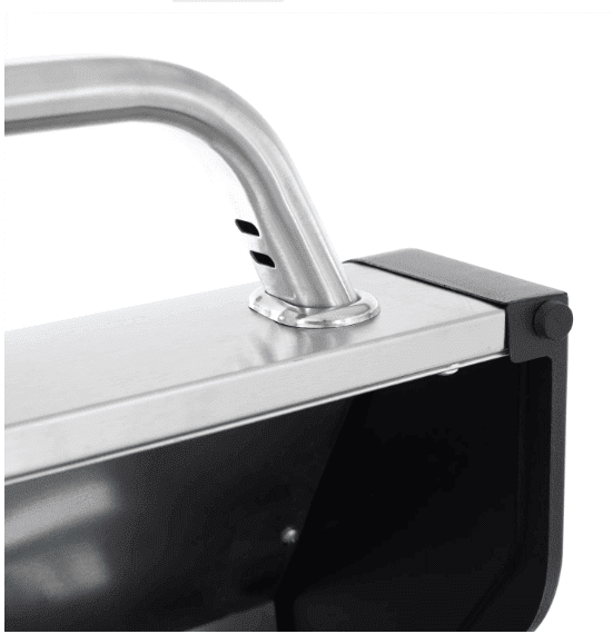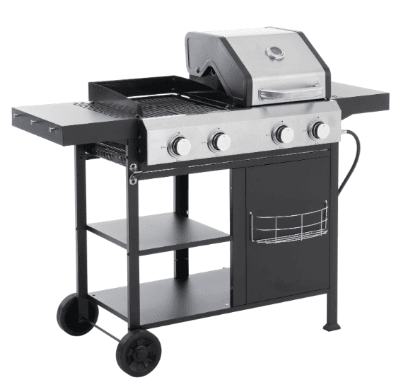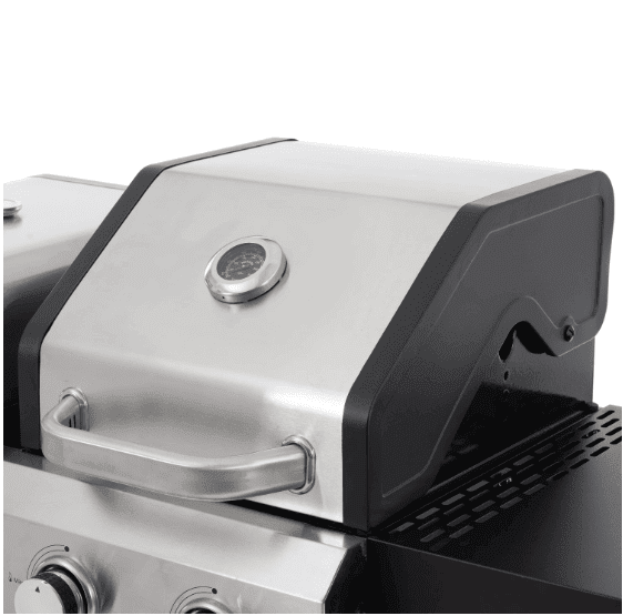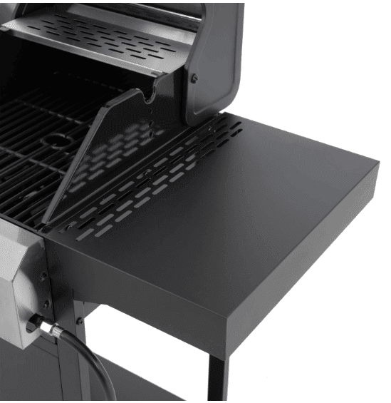 Ample space for prep: Two fixed side tables provide ample space for food preparation. There are also two storage shelves to keep your barbecue accessories within easy reach.