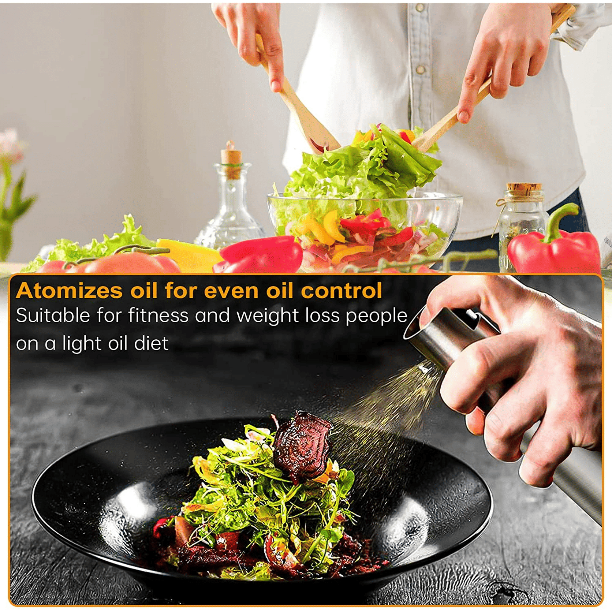 Wide application: our oil sprayer is reusable and multifunctional perfect kitchen gadgets. Put oils, vinegars, lemon and lime juice or marsala wine into oil sprayer bottle, produces a even mist so everything gets covered in oil.Can be used with bbq, salads, pasta,air frying,pans and many other dishes ideal for those.