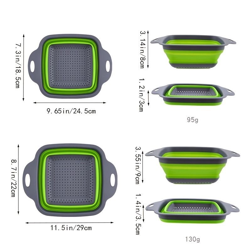 Collapsible Colander Set Of 2; Silicone Square Strainer With Handle For Kitchen Food Draining Pasta Vegetable Fruit And Meat