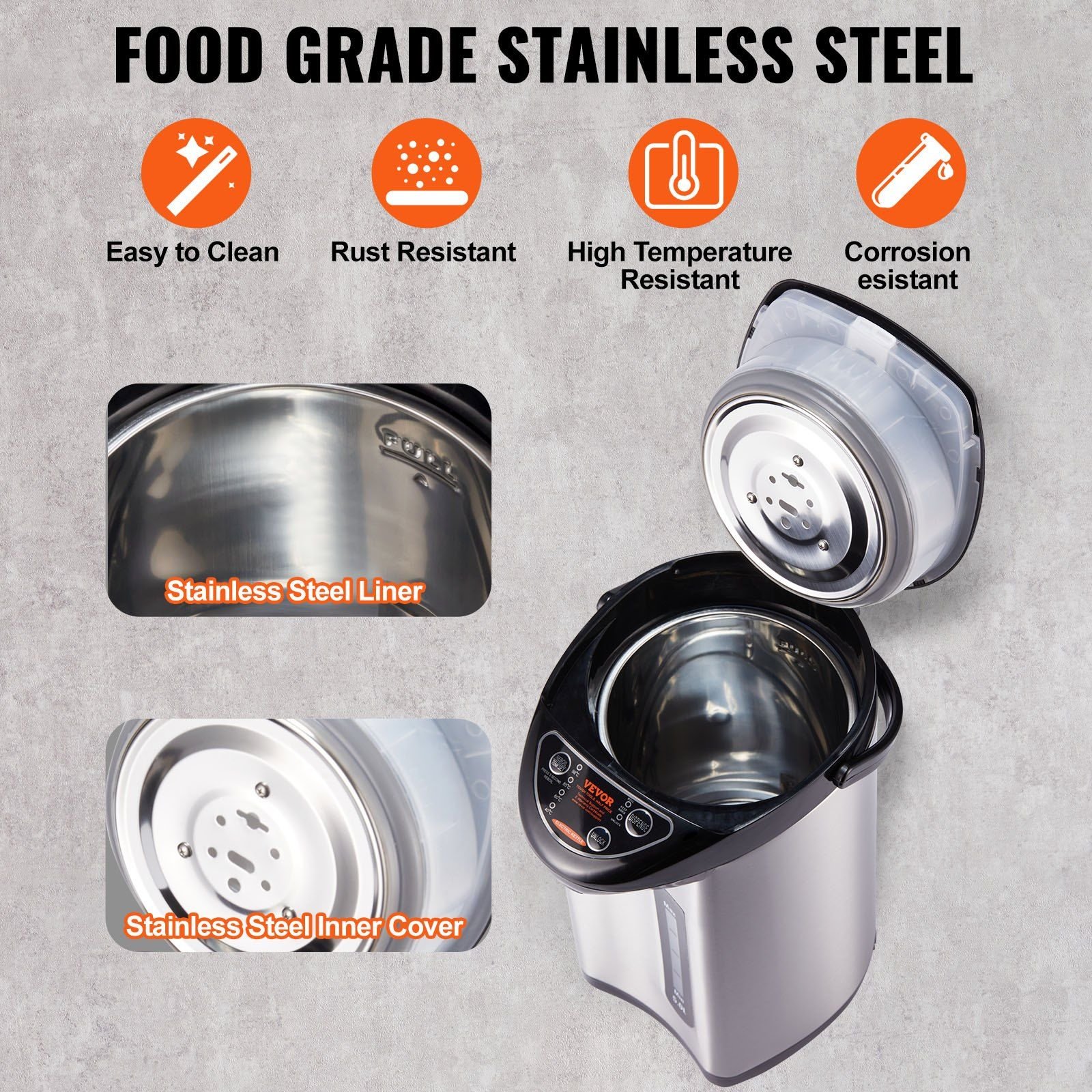 Crafted from food-grade materials, our hot water dispenser countertop boasts a 304 stainless steel inner liner and inner cover. This feature ensures rust resistance, high temperature, and corrosion resistance. The lid easily detaches with a press for effortless cleaning.
