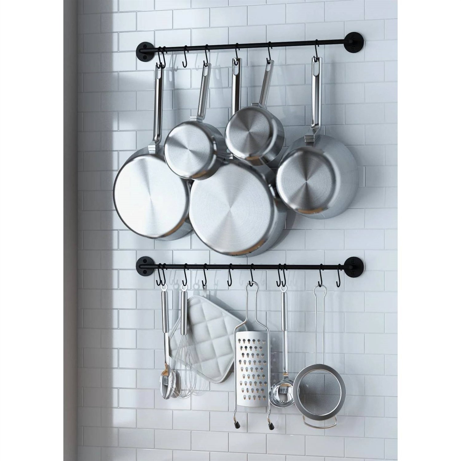 Set of 2 - Black Metal Wall Mounted Pot Rack with 20 Hanging Hooks Set of 2 - Black Metal Wall Mounted Pot Rack with 20 Hanging Hooks Set of 2 - Black Metal Wall Mounted Pot Rack with 20 Hanging Hooks