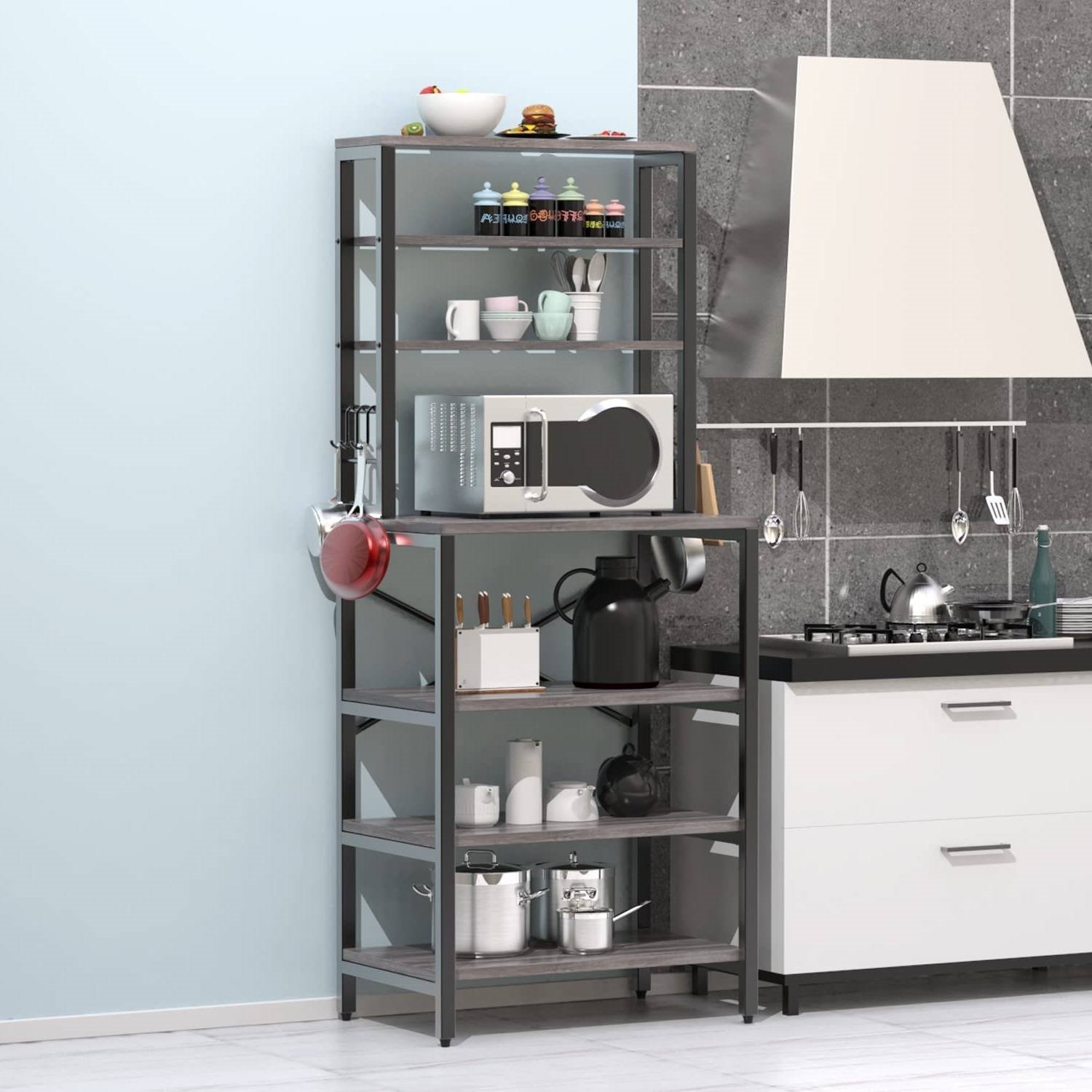 Modern Gray Metal Wood Kitchen Baker's Rack Shelf Microwave Stand