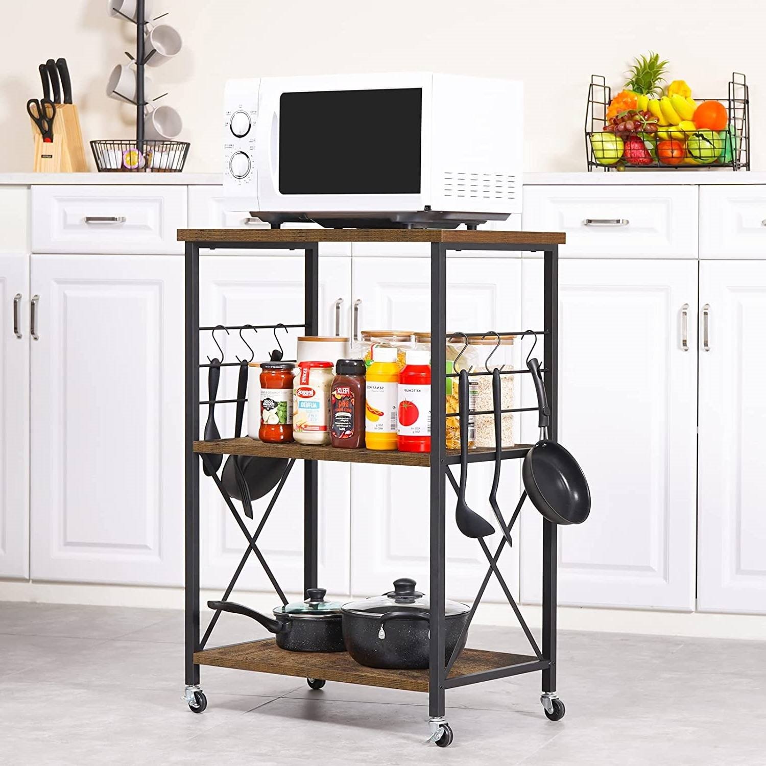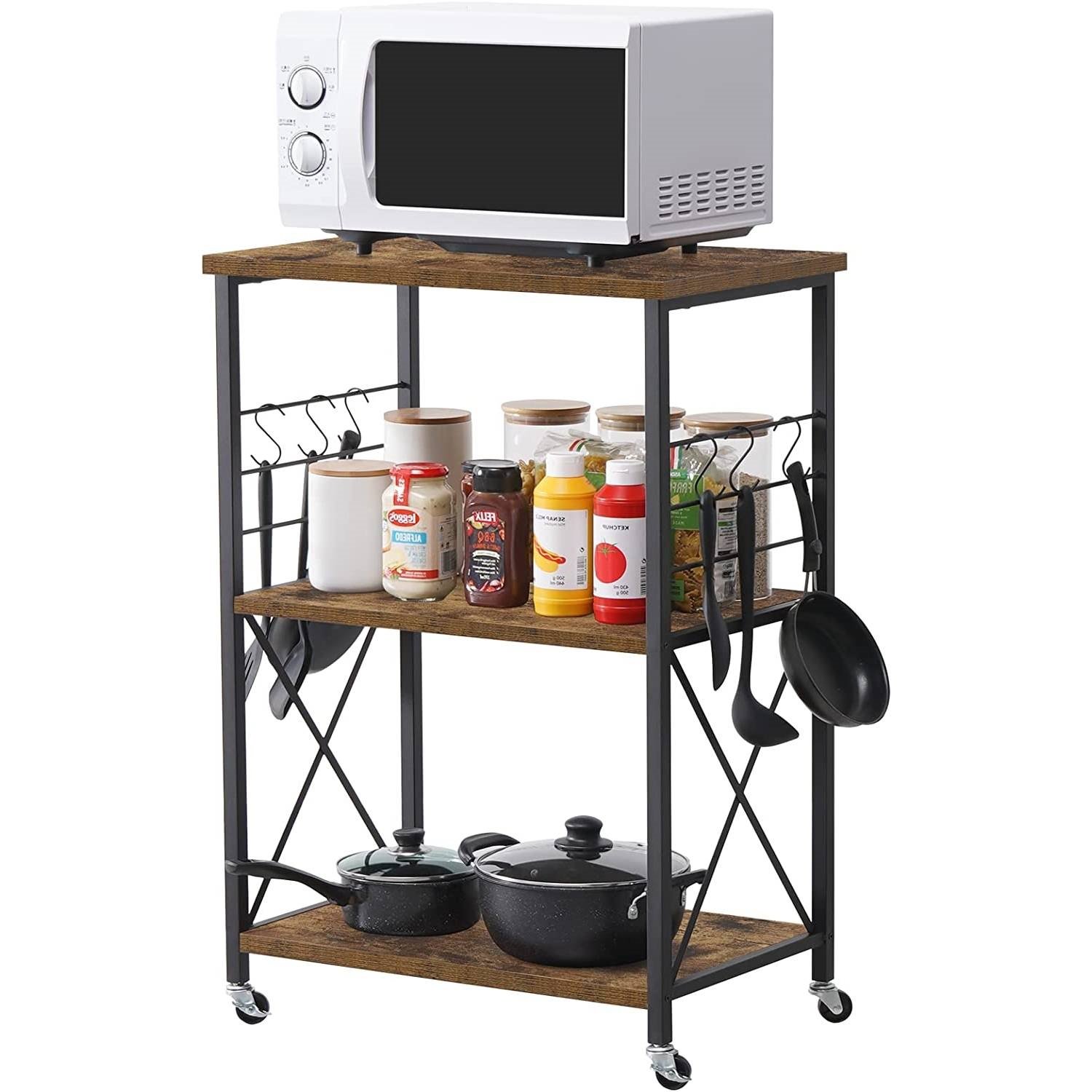 Black Metal Rustic Brown Wood 3-Shelf Kitchen Baker's Rack Microwave Cart Black Metal Rustic Brown Wood 3-Shelf Kitchen Baker's Rack Microwave Cart Black Metal Rustic Brown Wood 3-Shelf Kitchen Baker's Rack Microwave Cart