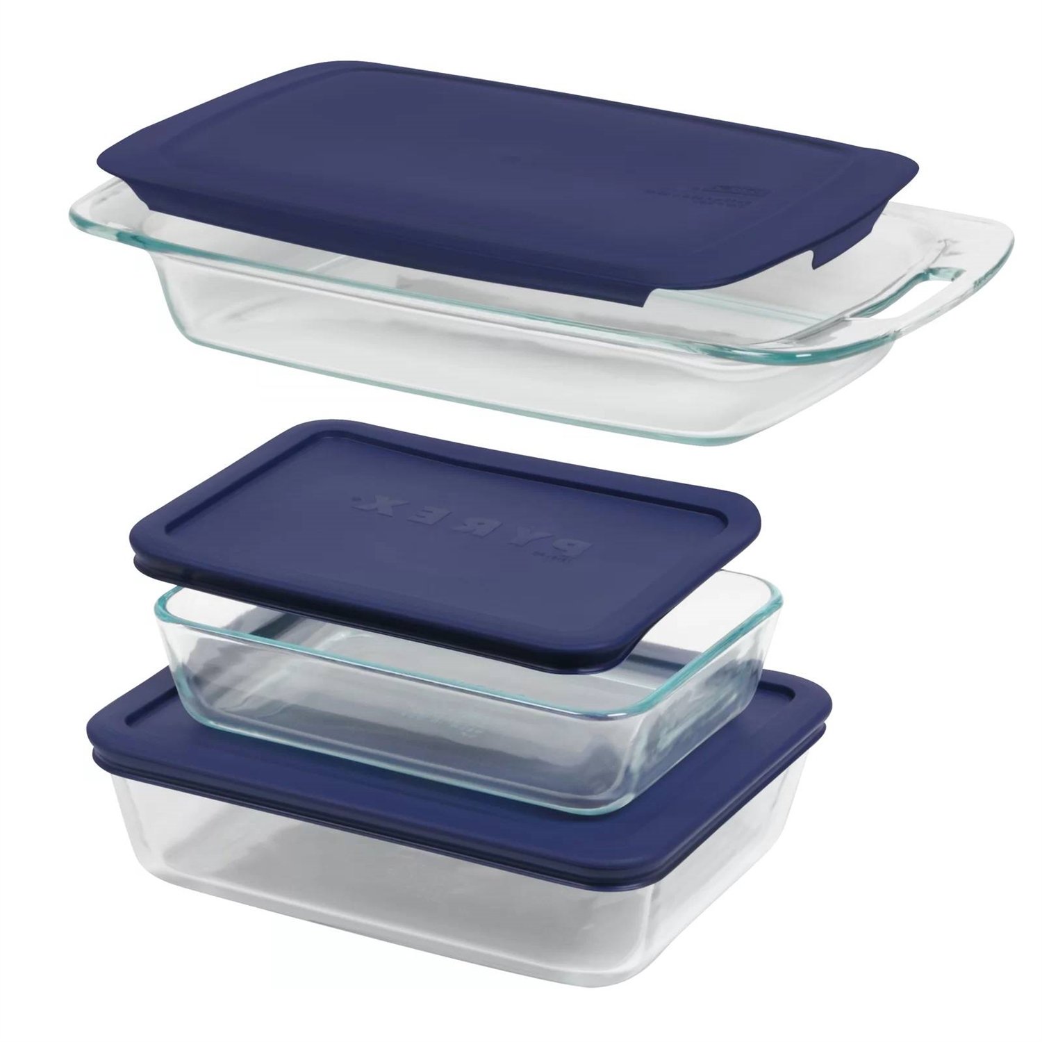 6-Piece Glass Bakeware Food Storage Set 3 Baking Dishes with Blue Plastic Lids 6-Piece Glass Bakeware Food Storage Set 3 Baking Dishes with Blue Plastic Lids 6-Piece Glass Bakeware Food Storage Set 3 Baking Dishes with Blue Plastic Lids