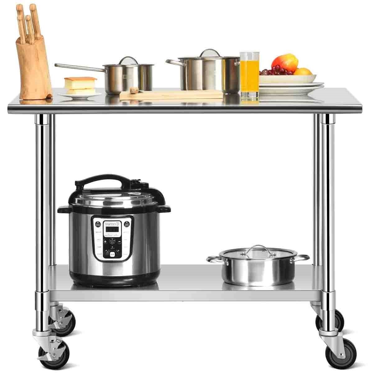 Stainless Steel 4ft x 2ft Kitchen Cart Table on Wheels with Adjustable Shelf Stainless Steel 4ft x 2ft Kitchen Cart Table on Wheels with Adjustable Shelf Stainless Steel 4ft x 2ft Kitchen Cart Table on Wheels with Adjustable Shelf
