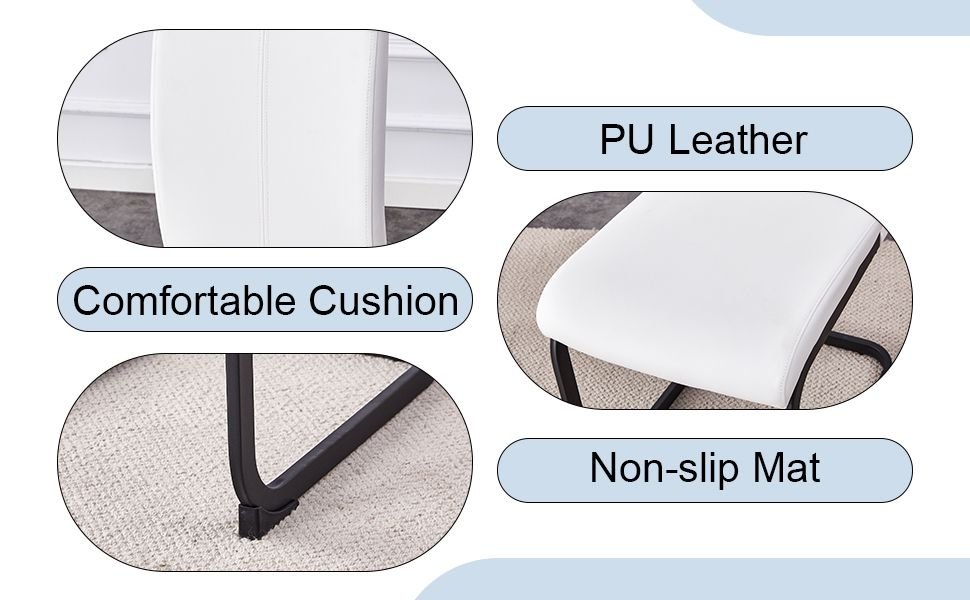 Stable Arched Metal Legs: The black arched metal legs not only add a sense of design but also provide strong support, ensuring the stability and durability of the chair.Anti-Slip Protective Feet: The anti-slip feet design at the bottom of the chair legs protects the floor from scratches and increases the safety of the chair during use.