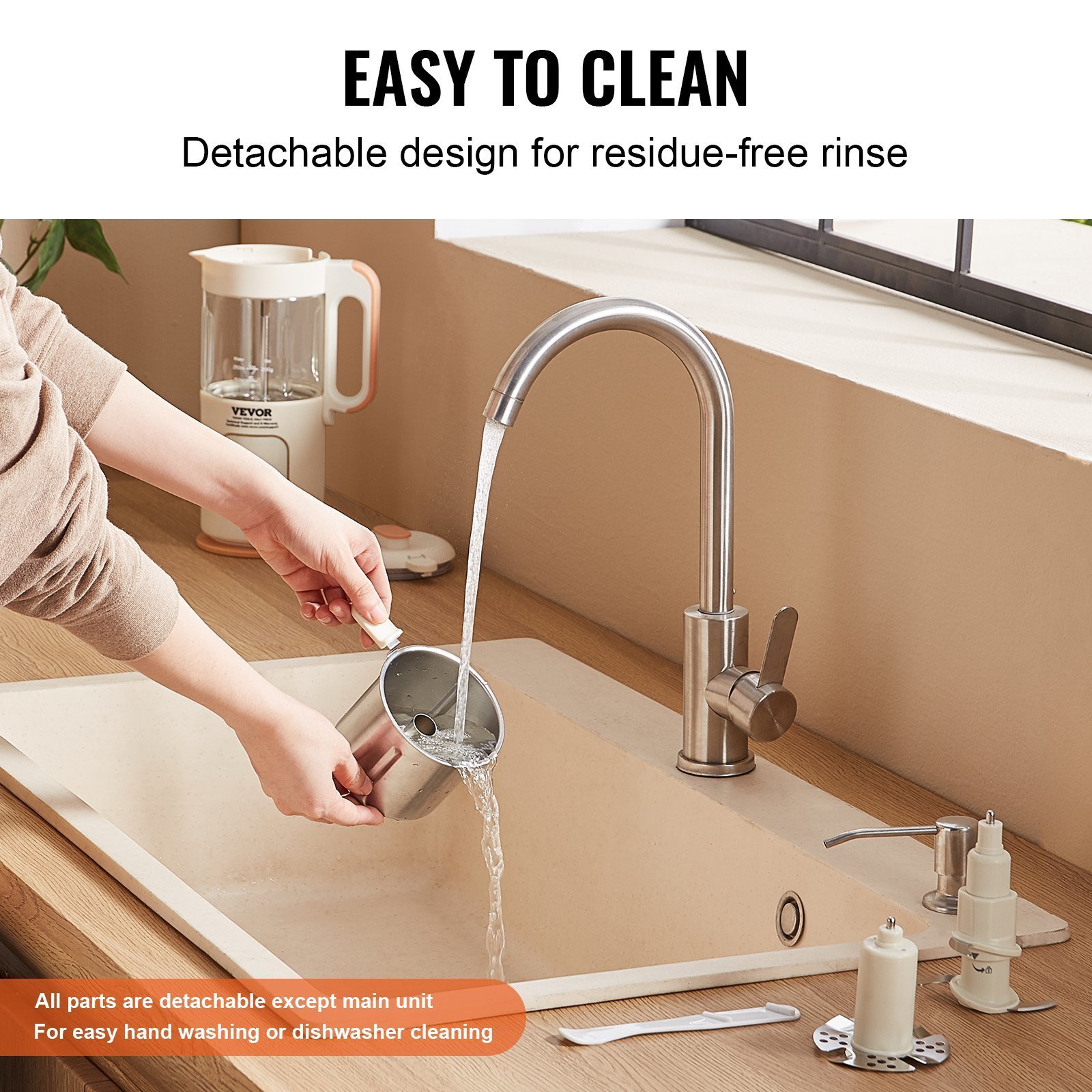 3.Effortless Cleaning: Say goodbye to the hassle of cleaning. Each component except the main unit of our baby food blender can be easily disassembled and cleaned separately, ensuring a thorough cleanup. Reduce food residue buildup and extend the life of your baby puree maker.