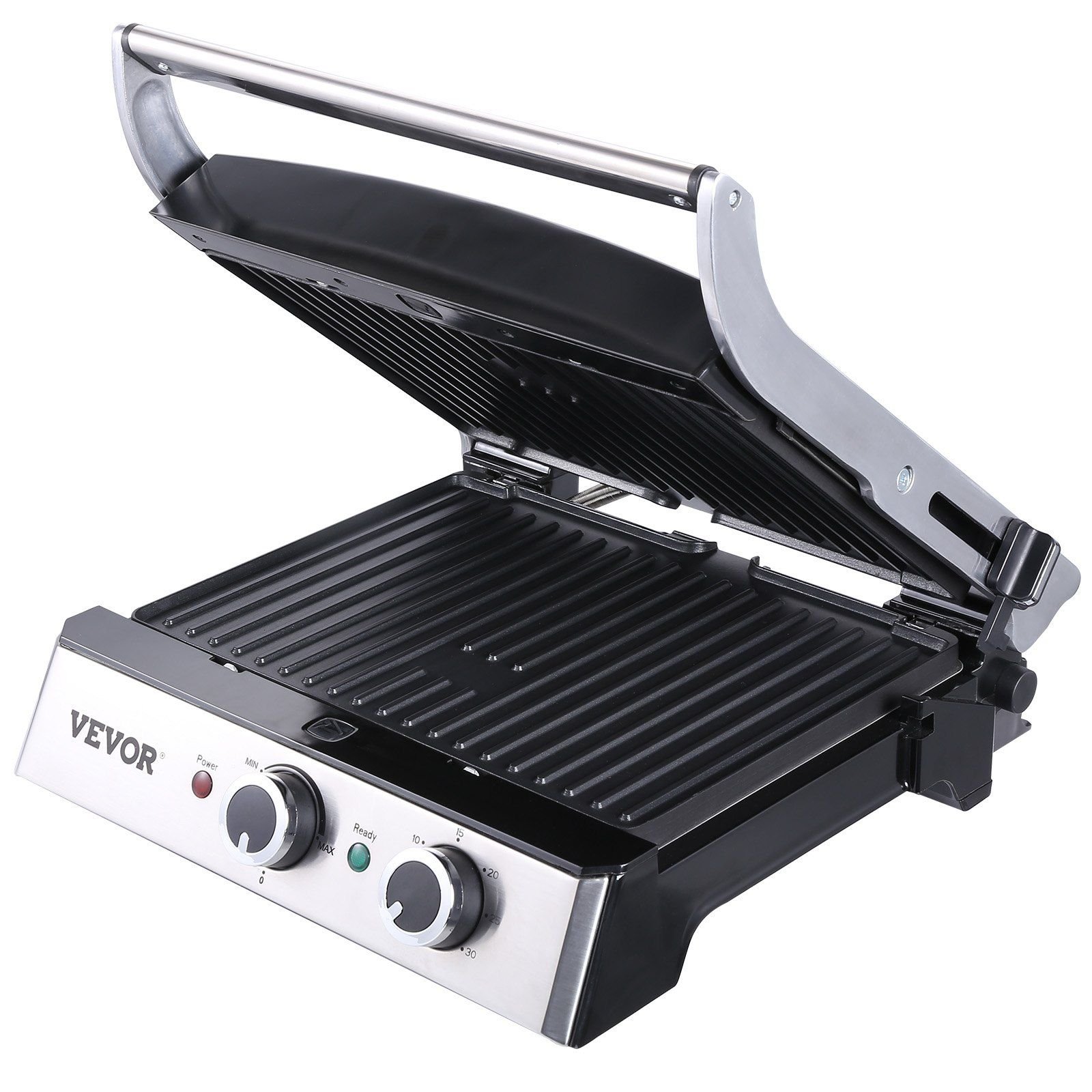 4.Precise Temp & Time Control: This commercial grill has adjustable temperature controls and timing function to ensure the food is perfectly cooked. The temperature's range from 0-446°F / 0-230°C.