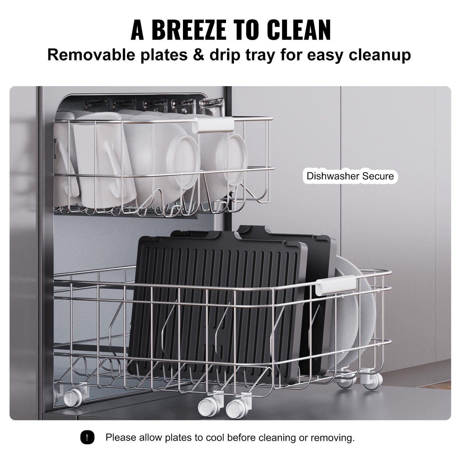 3.Hassle-Free to Clean: The tabletop electric grill keeps your kitchen clean and washing to a minimum thanks to the removable plates and drip tray, which can be put into the dishwasher for fast and easy clean-up.