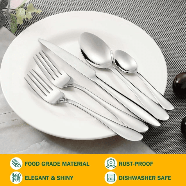Classical & elegant - attractive silver eating utensils has classic look without any pattern that can match up perfectly with different table setting, mirror polished surface make them keep lasting shine, smooth surface is stain-resistant and easy to clean, dishwasher can do this chore for you to save time and effort